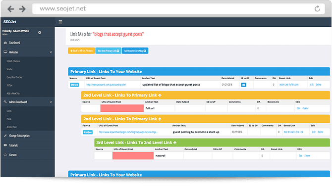 SEOJet provides you with link map management software that will give you tiered link plans to help you dominate the SERPs for all your clients or your main business website.