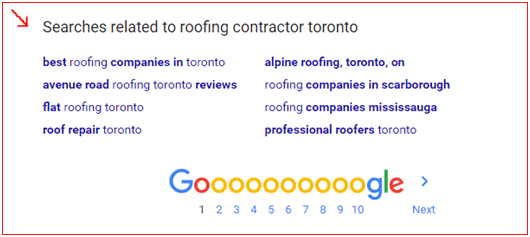 In case you can’t find it, here is a preview of the Related Searches category with the (roofing) example we already mentioned above.