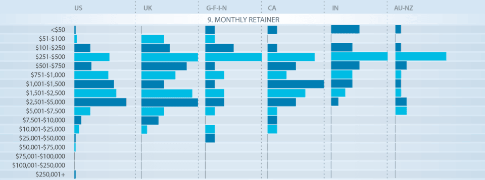 Because SEO can be done in so many different ways, many consultancies will charge by the project. In fact, according to a Moz survey, 70.1% of SEOs offer project-based pricing. If this is something you’re interested in, you can find someone who offers it. Expect to pay between $1,200 and $7,500+.